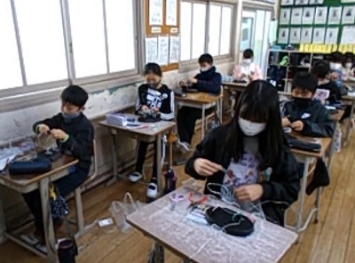 5年生の子どもたちは図工の時間にワイヤーアートの制作を行っていました。