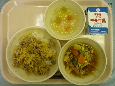 スタミナ丼 牛乳 はっぽうたん あじさいゼリー