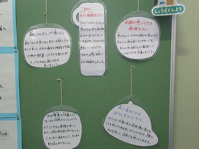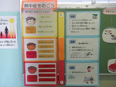 7月の保健室廊下掲示は、熱中症予防についてです。