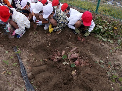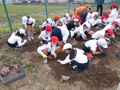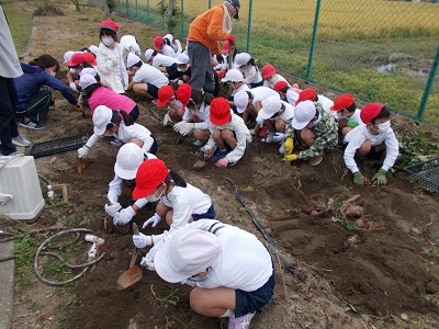 今年も豊作で、子どもたちは大喜びで笑顔いっぱいでした。後日、1・2年生の子どもたちがさつまいもを家庭に持ち帰りますので、秋の味覚をご堪能ください。