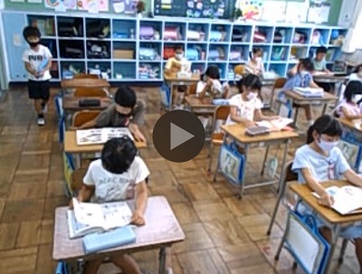 静かな雰囲気の中で、子どもたちは読書、担任の先生は連絡帳やプールカードの確認に取り組んでいました。