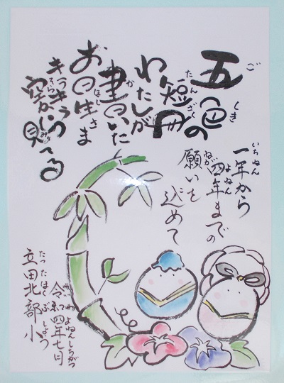 子どもたちの願い事が書かれた五色の色鮮やかな短冊が風に揺れていました。