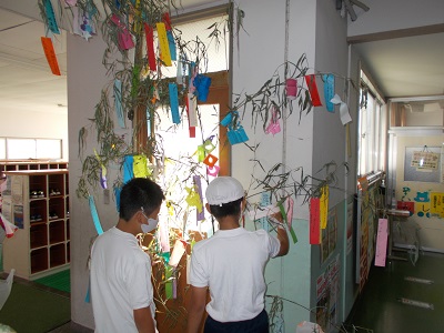 昇降口の七夕飾りです。