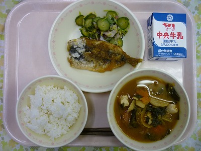 ごはん 牛乳 いわしのおろしソースかけ 梅肉和え