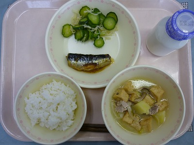 ごはん 牛乳 いわしの梅煮 即席漬け 白味噌汁