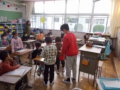 児童会役員のみなさんが、朝の会中に各学級をまわって、