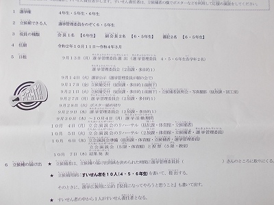 4年生以上が児童会選挙にかかわります。選挙管理委員のみなさん、よろしくお願いします。また、立候補をする皆さんは、立北小をよりよくするために、自分にできることを考え、そのことを選挙活動を通してアピールしてください。他の皆さんは、立北小の代表として、だれがふさわしいかをよく考え、選挙に臨んでください。