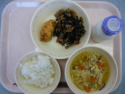 ごはん 牛乳 がんもどきの甘酢あんかけ ひじきの炒め煮