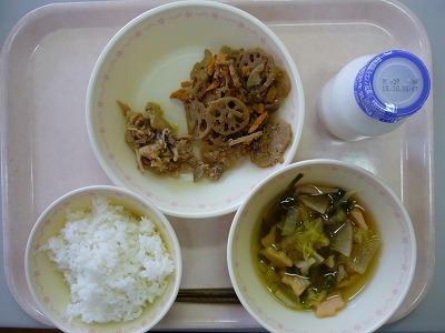 ごはん 牛乳 豚肉のしょうが炒め れんこんのきんぴら