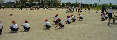 運動会の全校練習の最後に、全校で力を合わせて石拾いをしました。