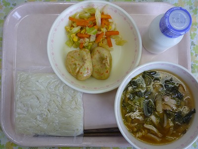 五目あんかけうどん 牛乳 ふんわり豆腐のあんつつみ 三色和え