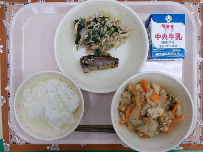 ごはん 牛乳 里芋のそぼろ煮 さんまのみぞれ煮