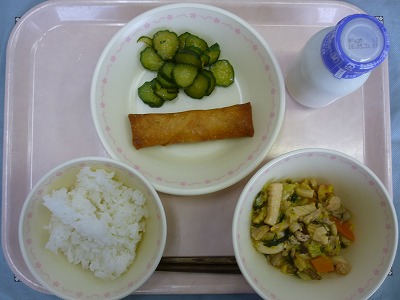 ごはん 牛乳 春巻き 八宝菜 きゅうりの香り和え