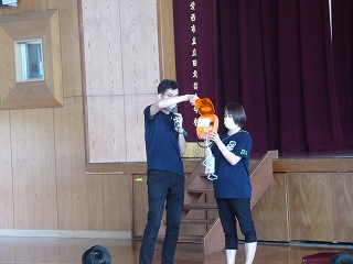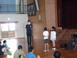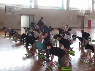 6時間目体育館で6年生は「PUSH講習」を受けました。「PUSH講習」とは、「誰でも」「楽しく」「気軽に」をモットーに受講する心肺蘇生講習です。AEDの使用方法に特化したシンプルなコースデザインです。6年生は水泳授業の最後の時間に「着衣泳」の授業を行い「自分の命は自分で守る」方法を学びましたが、今回はその第2弾として、「身近な人や目の前で倒れた人を助けるためにできること」を学びました。皆、真剣に取り組むことができました。最後に代表して学級委員の2人に感想を述べてもらいました。そして、講師の先生からは今日学んだことや習ったことを家庭で保護者の方に伝えることが宿題として出されました。