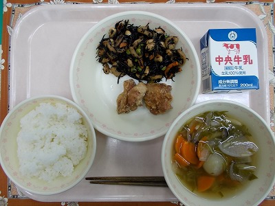 ごはん 牛乳 鶏のから揚げ ひじきの炒め煮 吹き寄せ汁