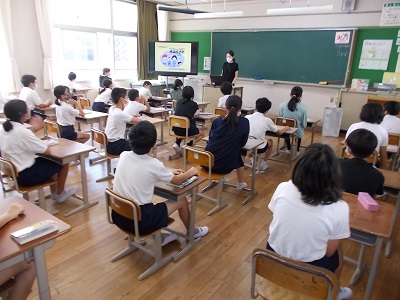 6年生の子どもたちが身体測定の後に、感染症の予防について学んでいました。