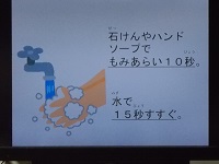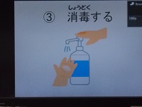 養護教諭の先生が写真のようなスライドをいくつも準備し、感染症予防のポイントを子どもたちにわかりやすく伝えてくれていました。今日は6年生でしたが、保健の学習は全ての学年で養護教諭の先生が行ってくれています。