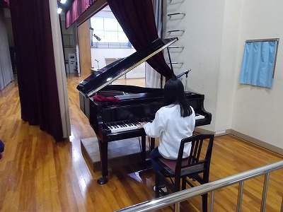 朝礼の最後に、6年生の伴奏で、校歌を歌いました。