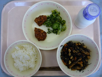 ごはん 牛乳 鶏肉の竜田揚げ ひじきの炒め煮 青じそ和え