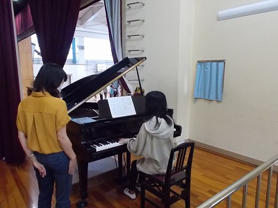 今日も、6年生の代表のピアノ伴奏で、校歌を歌いました。