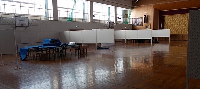 体育館で作品展示の準備が始まりました。