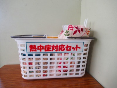 また、万が一に備えて持ち出し可能な「熱中症対応セット」が保健室前に設置してあります。気温の上昇により、子どもたちにこまめな水分補給を指導しています。昼休み前後に、持参した水分がなくなり学校のお茶を提供する場面が増えています。気温の上昇が予想される日、体育の授業がある日などはいつもより多めに水分をもたせてください。よろしくお願いします。