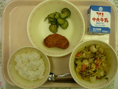 ごはん ささみ大葉梅肉フライ きゅうりの香和え