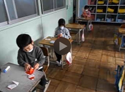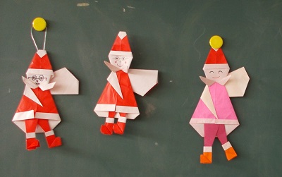 もうすぐクリスマスです。1年生の子どもたちは生活科の時間に折り紙で上手にサンタクロースを折っていました。