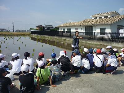 今日の1・2時限目に5年生が田植えを行いました。