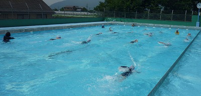 1・2年生は、浅いプールでもぐったり、浮いたりの練習、