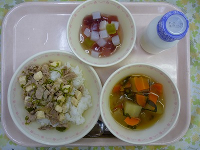 肉どうふ丼 とうがん汁 あじさいゼリー
