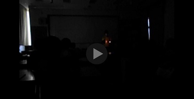 真っ暗なメディアルームで授業を行っていました。懐中電灯が太陽で、担任の先生が持っているボールが月です。ボールの位置が変わるとボールの明るく見える部分が変わります。先日の十五夜の月を思い出しながら月の満ち欠けに興味をもつ子どもたちの姿が見られました。