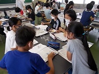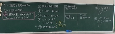 子どもたちは、植物の葉に日光が当たるとでんぷんができるのかどうかを、アルミニウムはくでおおい、日光が当たらなかった葉とおおいを外して日光を当てた葉にでんぷんがあるのかをヨウ素液を使って調べていました。観察・実験をする子どもたちの瞳は興味関心で輝いていました。理科室の利用や観察・実験ができるようになったことを有難く思います。また、事前の準備をしっかりと行い、授業を進めてくださる先生方に感謝です。
