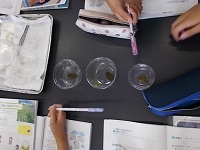 新型コロナウイルスの感染レベルが2となったため、換気やマスク着用、手洗いなど十分な感染予防対策を行った上で理科室の利用や、理科の授業での観察・実験を再開しています。