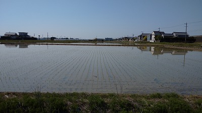 私の家の近くの早場米の水田では、田植えが終わりました。
