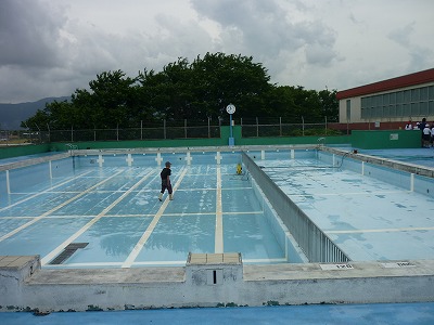 6月13日のプール開きの日までには、ピカピカのプールに