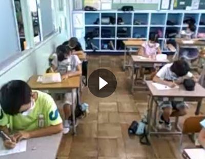3年生の子どもたちは国語の時間に漢字の書き取りテストを行っていました。