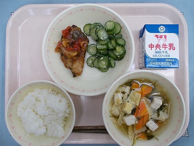ごはん 牛乳 トロあじの和風トマトあん