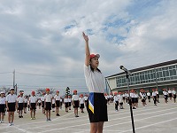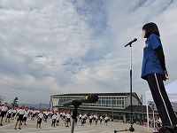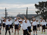 予報よりも明るい天気の中、運動会が始まりました。代表の選手宣誓の後、怪我をしないための準備運動です。