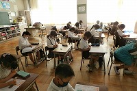 2年生がまとめのテストに取り組んでいました。真剣に集中して静かに取り組んでいました。