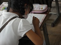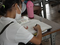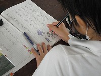 3年生は国語で、「私と小鳥と鈴と」を書き写して、内容にあった挿し絵を書いていました。私か小鳥か鈴か、何をどこに描くか、何色にするか、一人一人の感じ方で変わってきます。