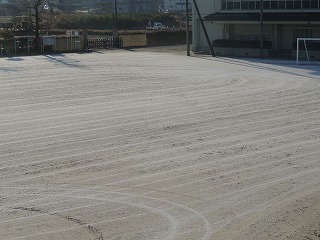 昨日、運動場に塩化カルシウムを撒いてもらいました。