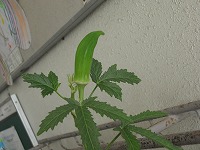9月7日に紹介した、昇降口に避難している植木鉢ですが、まだまだ元気です。9月7日に、この植物は何かわかりますかと尋ねていましたのでここで答えを発表します。