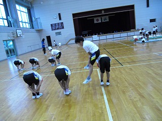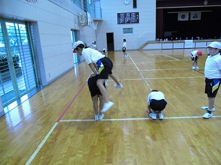 体育の時間、熱中症対策でマスクを外しますが、コロナ対策のため、説明するときなど間隔をあけて並びます。ただ、運動の中で接触してしまうのは仕方がないと考え、終わった後、教室に入るときにはきちんと手を洗うように指導しています。