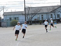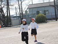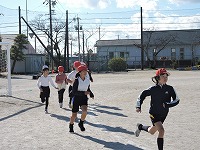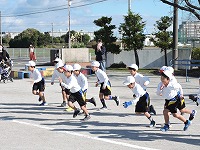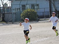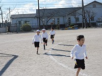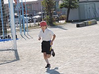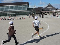 今日は完走大会の本番です。遠くの多度山がはっきり見えるくらい良い天気で深い青色の空の下、みんな元気に走りました。