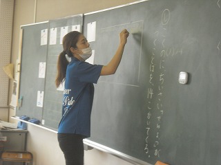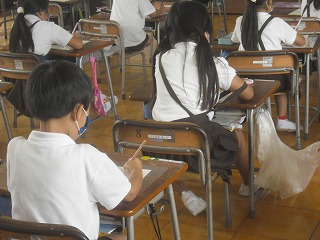 1年生は国語で、小さな「っ」や「ゃ」「ゅ」「ょ」を使う言葉を探していました。