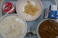 秋野菜のカレーライス(ご飯) 牛乳 ゆこう漬け リンゴゼリー