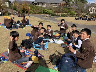 天気がいいので広場でお弁当を食べました。