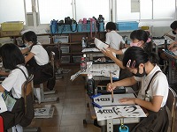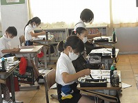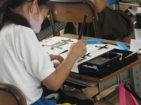 4年生が書写で「真心」という字を書いていました。「真」と「心」では線の質が全く違います。子どもたちは、「真」だけ、「心」だけと練習で書き分けてから清書に挑戦していました。