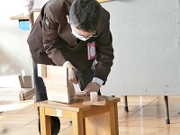 4年生が図工で木工を行っています。先日はのこぎりで木や板を切っていましたが、今回はそれらの部品を金づちと釘で打ち付けていました。どのくらいの力加減かわからず、釘がなかなか入っていかなかったり、斜めに売ってしまい釘が曲がってしまったりと苦労していましたが、ちょうどいい力、方向がそろうと、気持ちよく釘が撃ち込まれていきます。昔は日曜大工なんて言っていたものが、最近ではDIY(Do It Yourself)といって手作りの家具や道具を作るブームになっているそうです。のこぎり引きや釘打ちなど、基本的な作業は修理にも使えます。作る楽しさ、直す楽しさを味わってほしいですね。